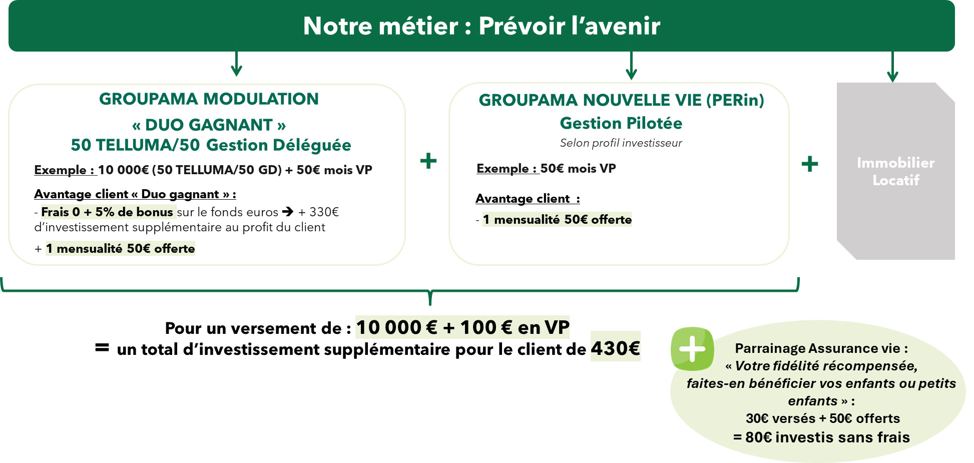 Pour un versement de 10 000 €  + 100 € en versements programmés :