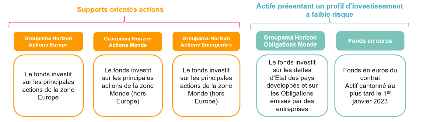 - Entre des supports financiers diversifiés (actions, obligations…) et le fonds en euros du contrat