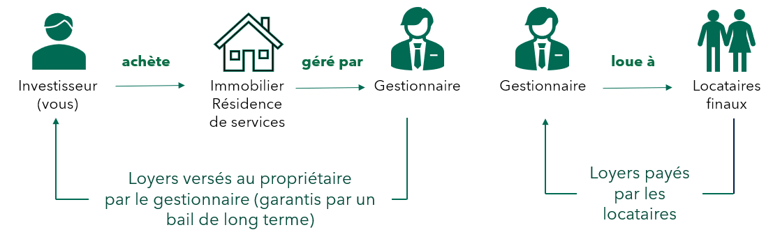 - Il garantit le paiement des loyers grâce à un bail à long terme, que le bien soit loué ou pas