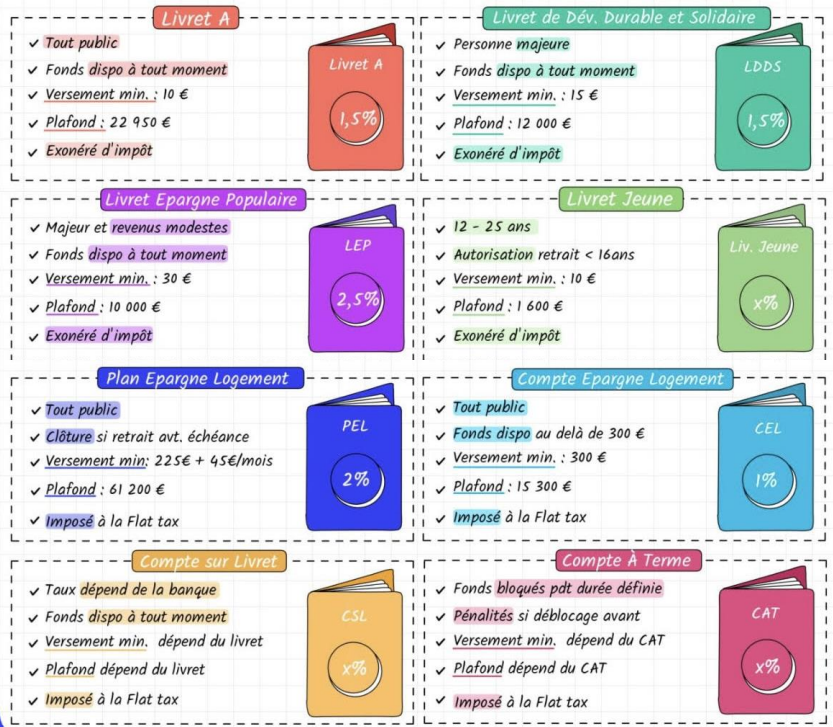 Les principaux livrets bancaires (au 1er février 2026)